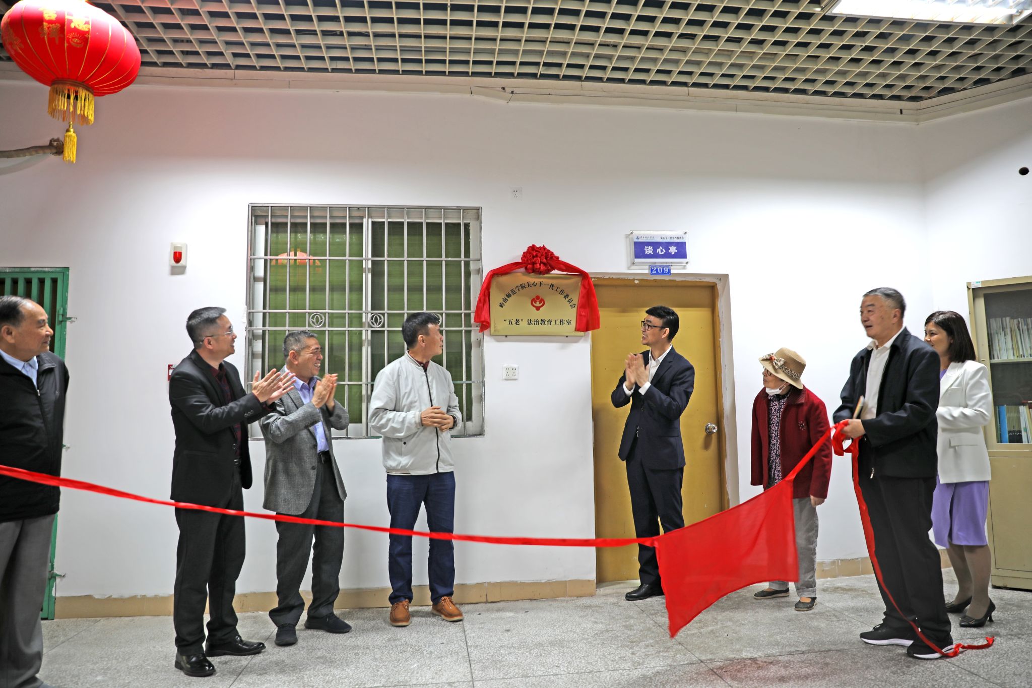 调研会后,王玉学、黄达海及与会成员共同为岭南师范学院关工委新成立的“刘海涛名师工作室”、“五老”法治教育工作室揭牌。