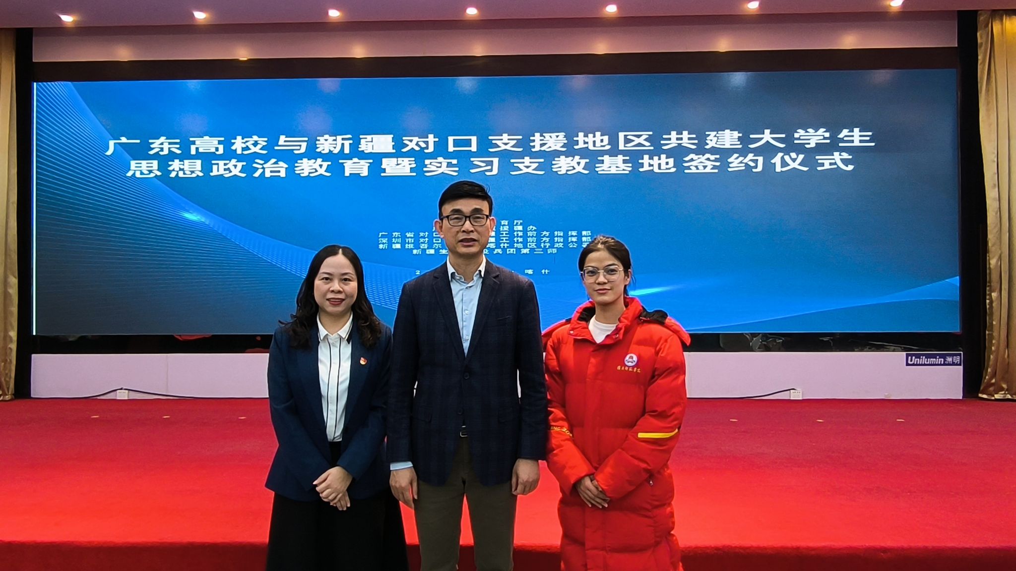 近日,学校党委副书记黄达海带队远赴新疆喀什市与兵团第三师图木舒克市,参加广东高校与新疆对口支援地区共建大学生思想政治教育暨实习支教基地(以下简称“校地共建”)签约仪式,与新疆生产建设兵团第三师签署合作协议,参加第三师图木舒克市教育局座谈,走访调研援疆实习支教学校并看望支教学生,研究部署推动基础教育援疆高质量发展。
