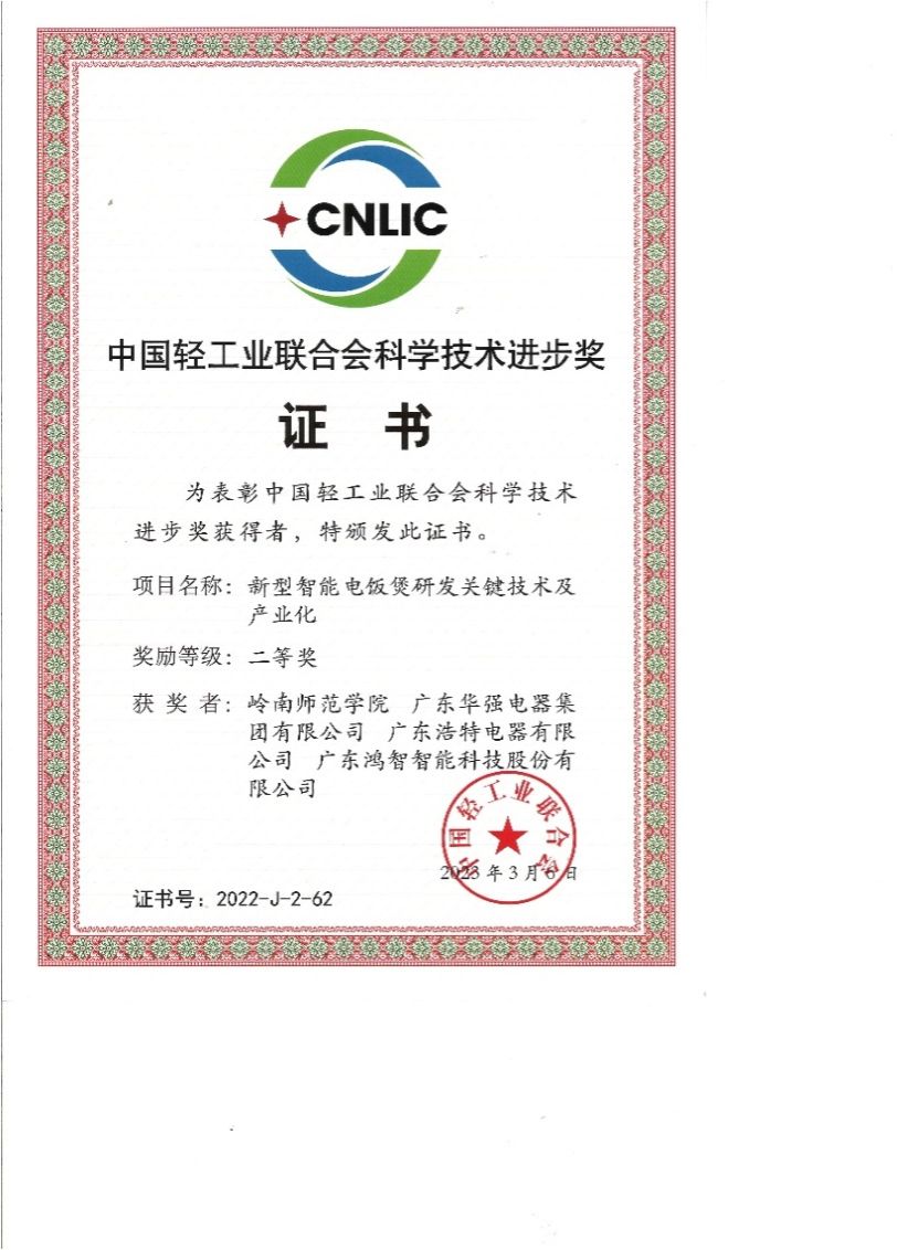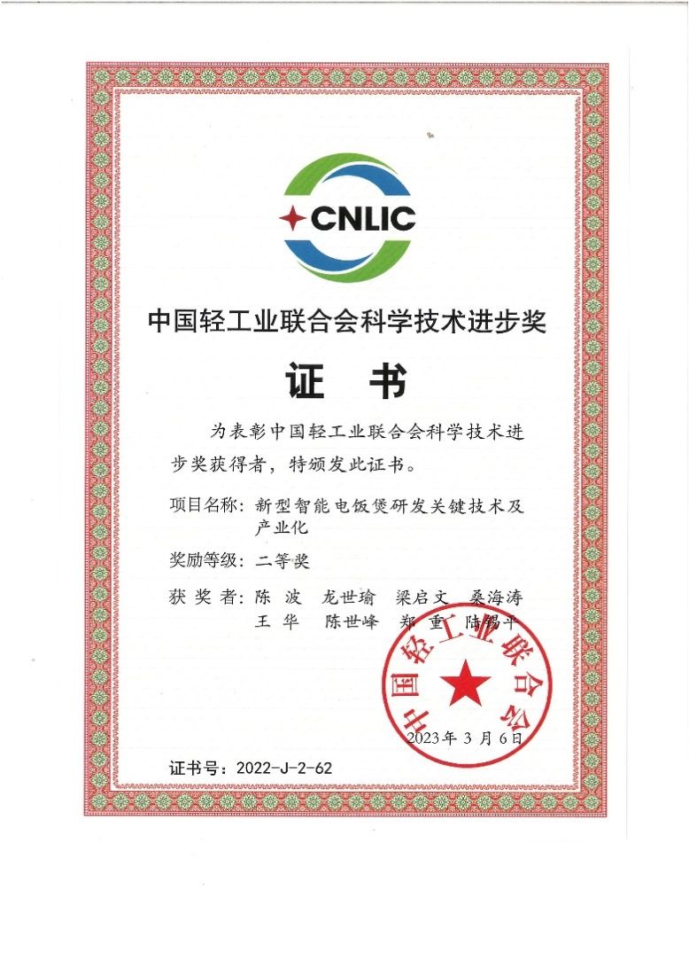 颁奖活动上,学校作为第一完成单位申报的《新型智能电饭煲研发关键技术及产业化》项目荣获中国轻工业联合会科学技术进步奖二等奖。学校陈波教授、龙世瑜副教授、梁启文老师、桑海涛博士、王华老师和陈世峰博士分别为项目的前六名完成人,此成果将为学校电子信息专业学位点建设提供强有力支撑。