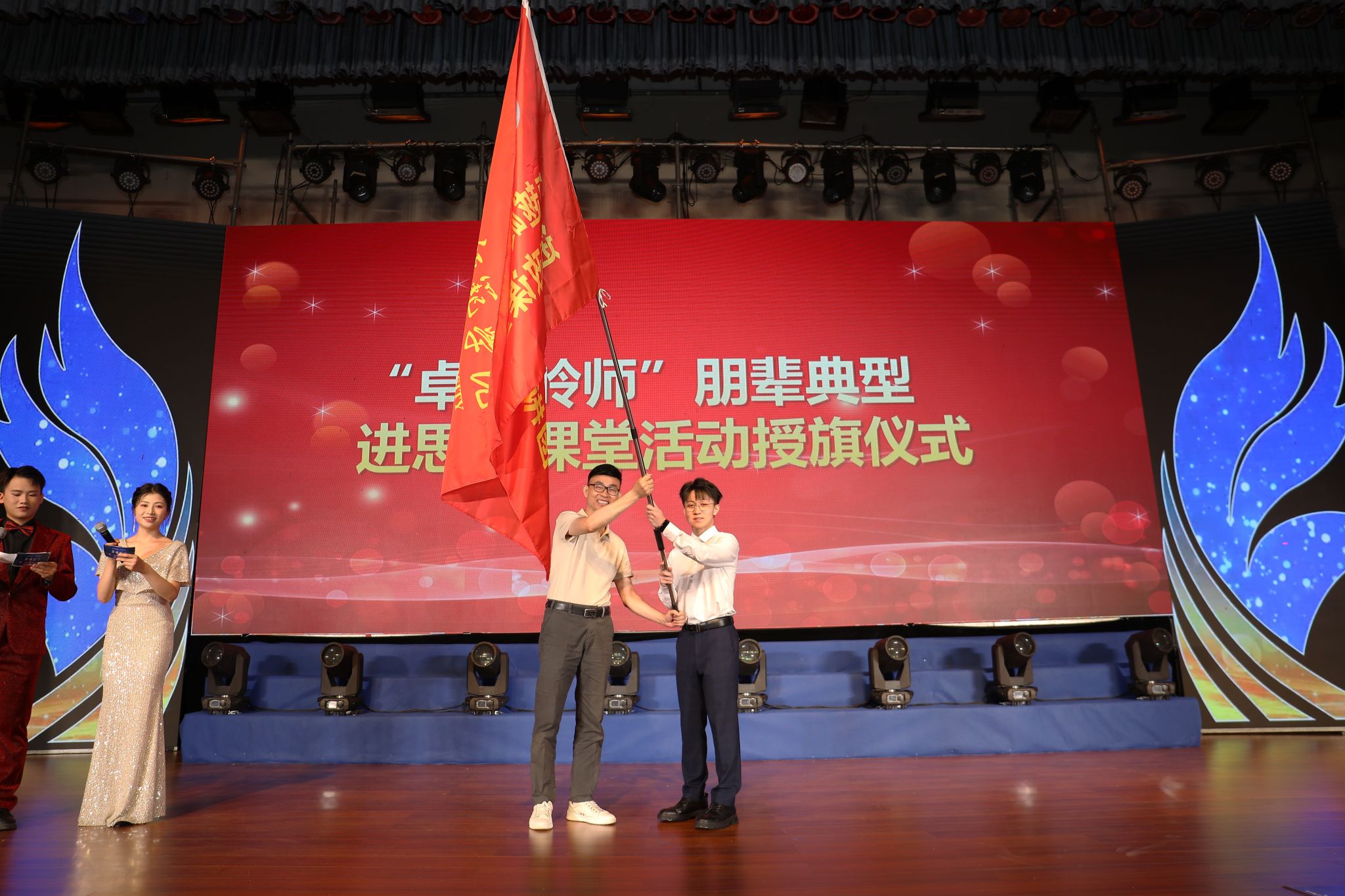 学校党委副书记黄达海为“卓越岭师”朋辈典型进思政课堂宣讲团授旗