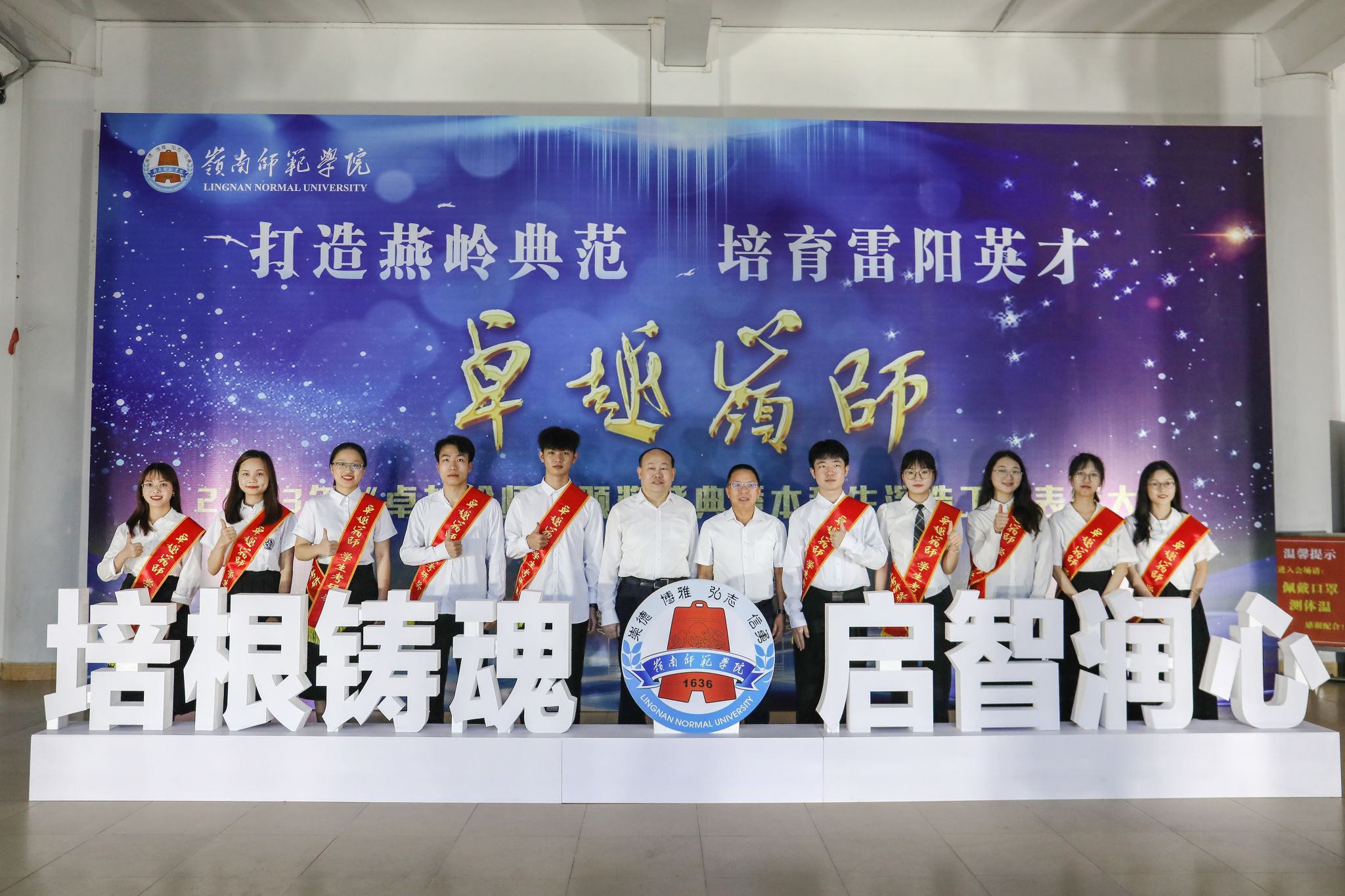 颁奖典礼分为“立德树人 梦启雷阳”“追求卓越 逐梦燕岭”“深造提质 圆梦岭师”三个篇章,并以视频的方式来回顾过去一年学校人才培养的成效,揭晓并颁发了教育部和团中央思政工作奖项、校卓越班集体、校大学生年度人物等系列奖项。黄达海为“卓越岭师”朋辈典型进思政课堂宣讲团授旗,金义富和学校职能部门领导为获得深造工作系列奖项的学院和学生颁奖。2020年第十三届“苏步青数学教育奖”广东省唯一获得者,现任深圳市第二高级中学深汕实验学校校长的优秀校友林伟为大学生年度人物颁奖,体现了卓越力量的薪火相传。