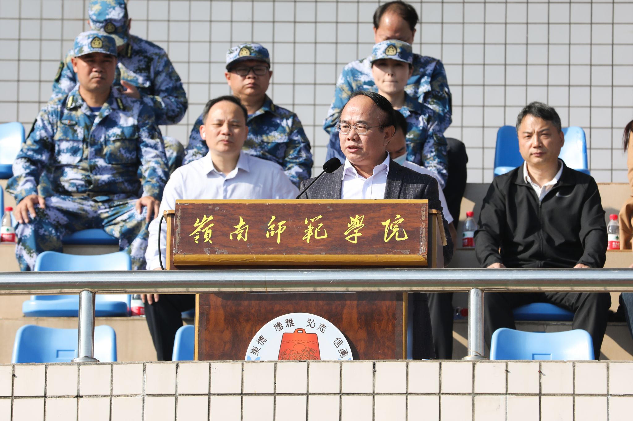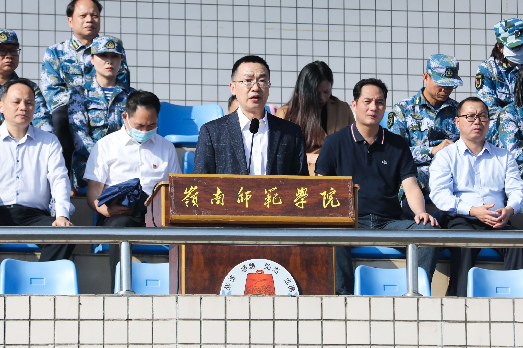岭师新闻中心讯:青年意气,百炼成钢;踌躇满志,气势如虹。11月26日上午,岭南师范学院2023级新生军训会操暨总结大会在雷阳田径场举行。2023级新生经过14天的洗礼,以挺拔的军姿、坚韧的精神、昂扬的斗志展示军训成果。