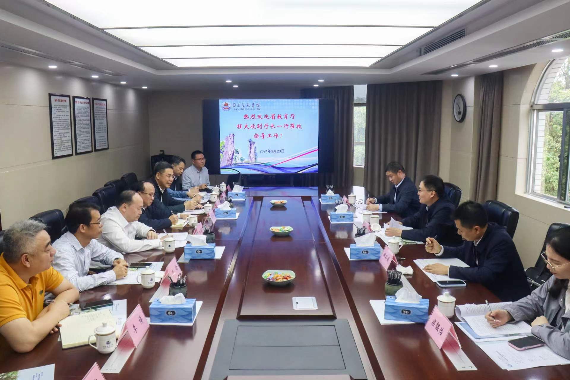 岭师新闻中心讯:3月23日上午, 省委教育工委委员、省教育厅党组成员、副厅长程大欣带队到岭南师范学院调研指导工作,岭南师范学院校长阳爱民在一号会议室主持调研座谈会。