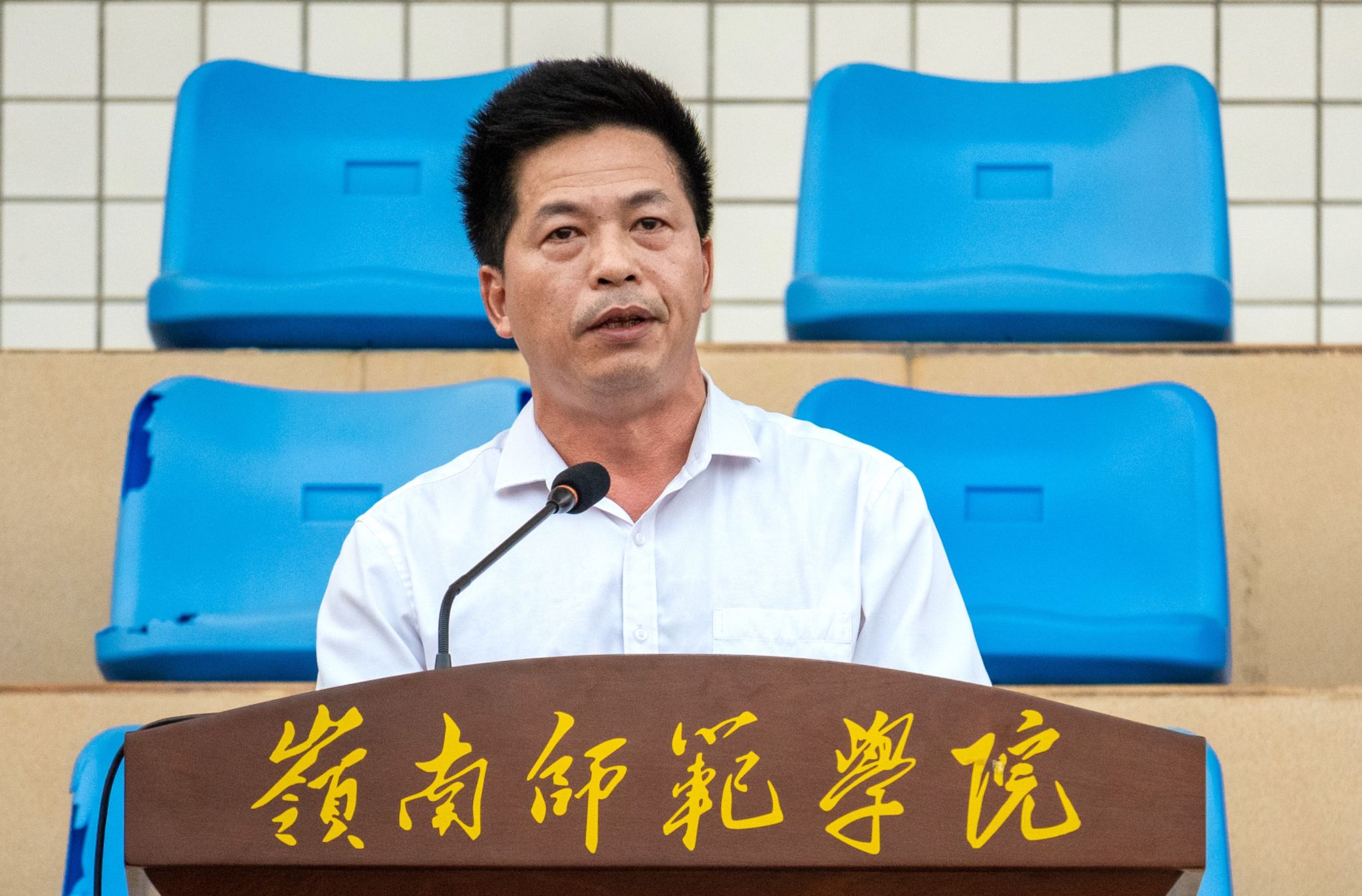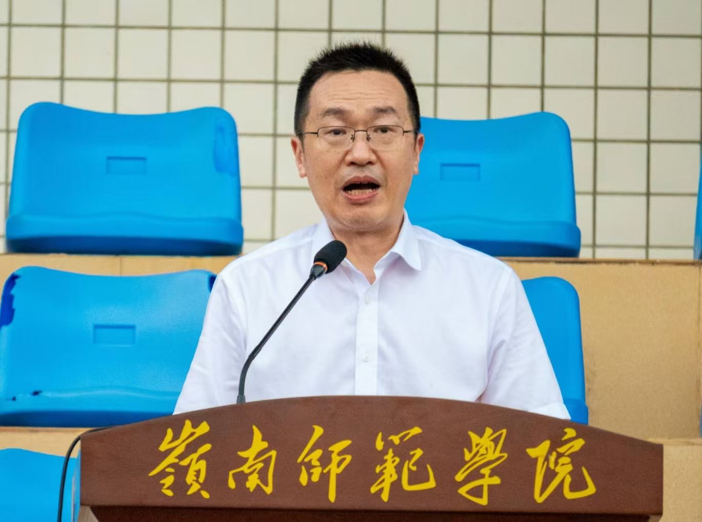 学生运动会裁判长陈涛宣读比赛成绩