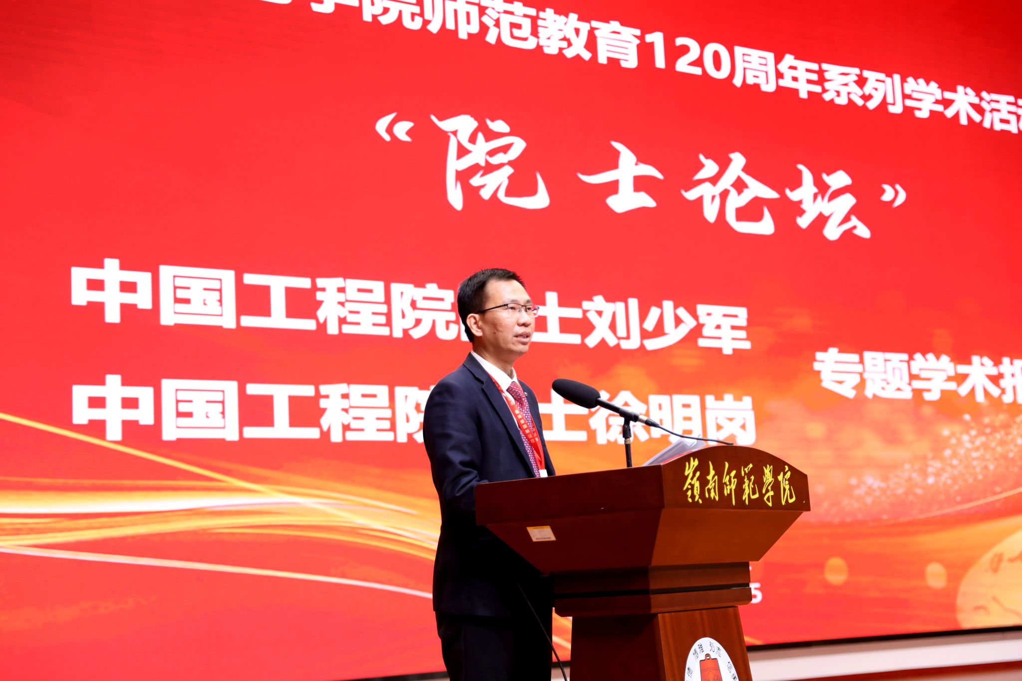 岭师新闻中心讯:12月15日,中国工程院院士、湖南师范大学刘少军和中国工程院院士、国际欧亚科学院院士、山西农业大学徐明岗研究员受邀莅校作专题学术报告,与广大师生校友、社会各界一起共襄岭南师范学院师范教育120周年发展大会,共同见证学校120年发展的辉煌成就。学校校长阳爱民在专题学术报告上致辞,学校党委副书记林晓敏出席报告会。报告会由生命科学与技术学院院长刘锴栋主持。