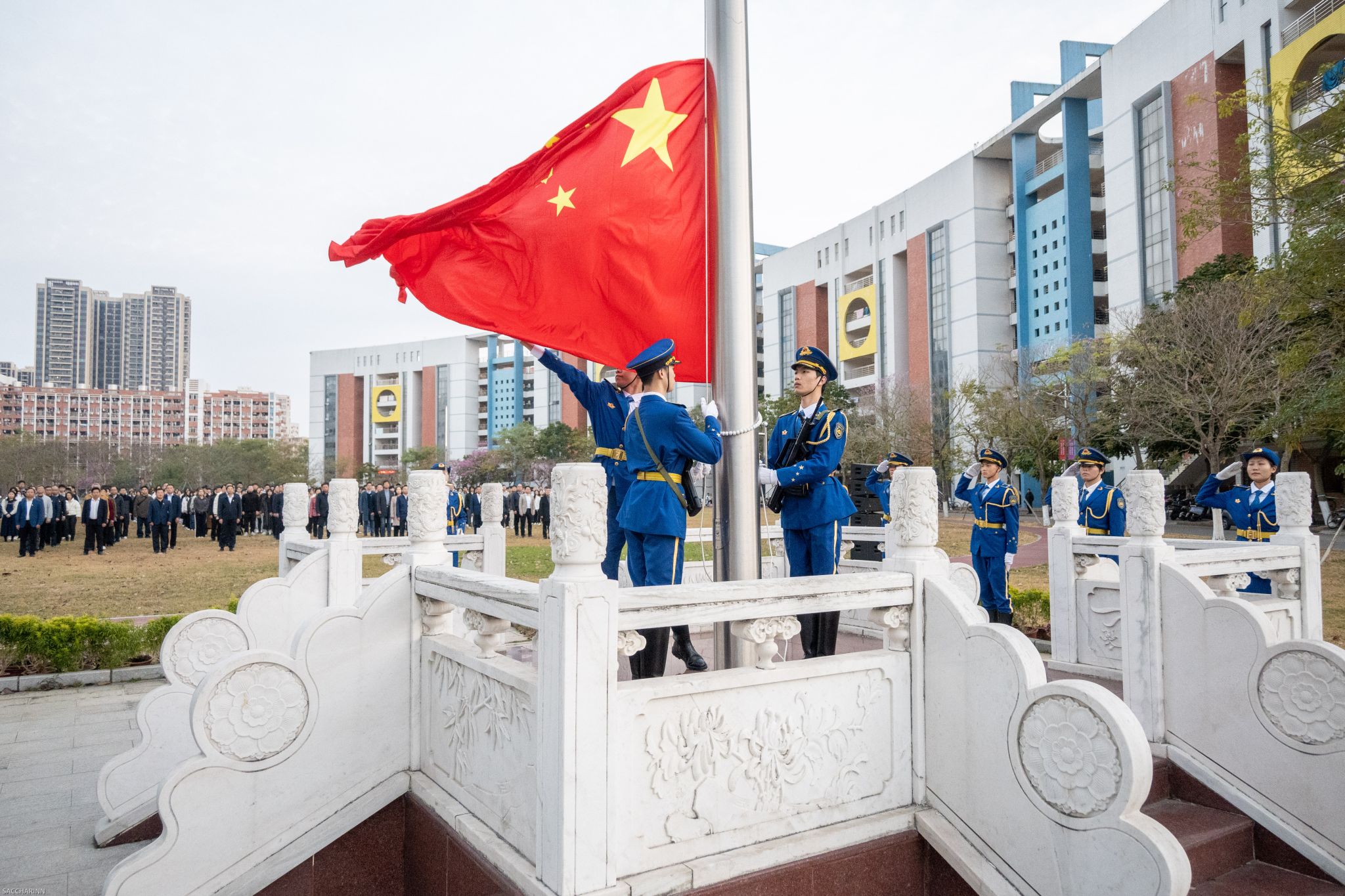 学校寸金校区各二级单位党政主要负责人,各二级学院辅导员、学生代表参加了升国旗仪式。