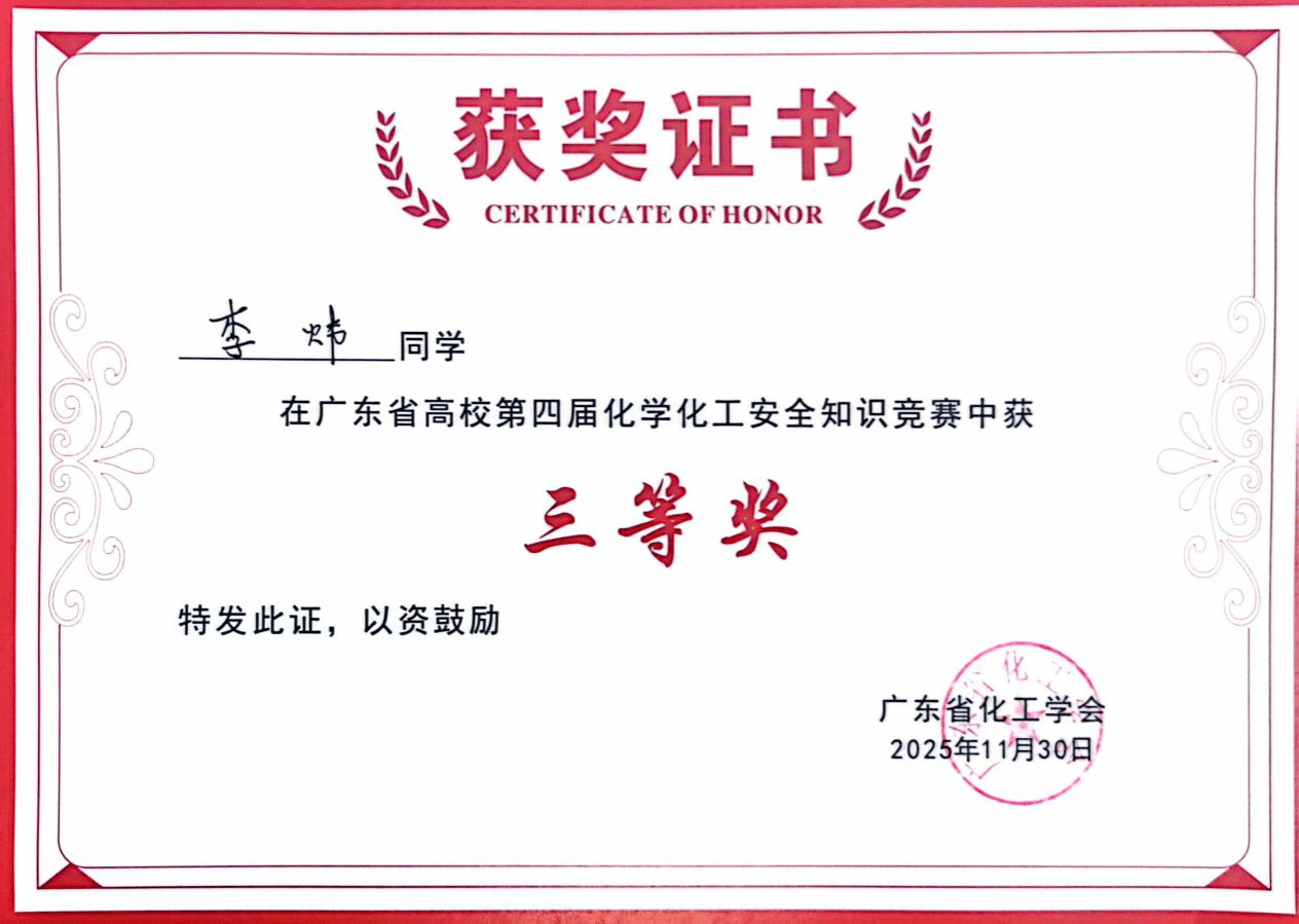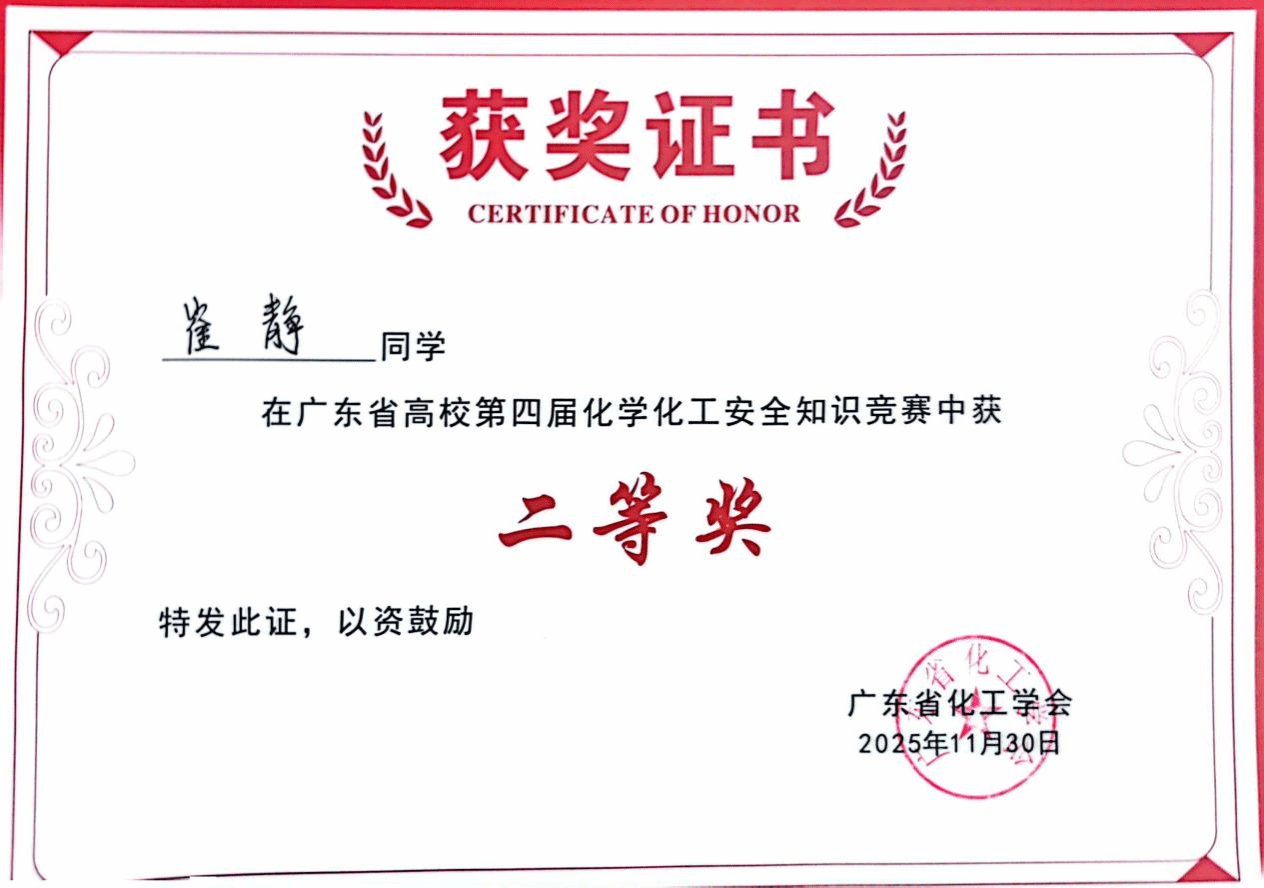 广东省高校第四届化学化工安全知识竞赛旨在面向大学生群体广泛普及化学化工安全知识,全面提升其安全操作规范,着力培养严谨的科学态度与强烈的责任意识,有效规避实验与生产过程中的潜在风险,切实预防各类安全事故。化学化工学院一直注重实验室安全规范管理,每年通过开展实验室安全知识竞赛、安全演练、实验室安全讲座等活动不断加强师生实验室安全知识学习,强化师生实验室安全意识。此次参与广东省高校化学化工安全知识竞赛,不仅展示了学院学子化学化工安全知识能力,也加深了我校与其他院校的交流;学院将以此为契机,继续推动师生实验安全意识和实验安全规范操作能力培养,确保实验安全,为教学科研、人才培养工作顺利开展保驾护航。