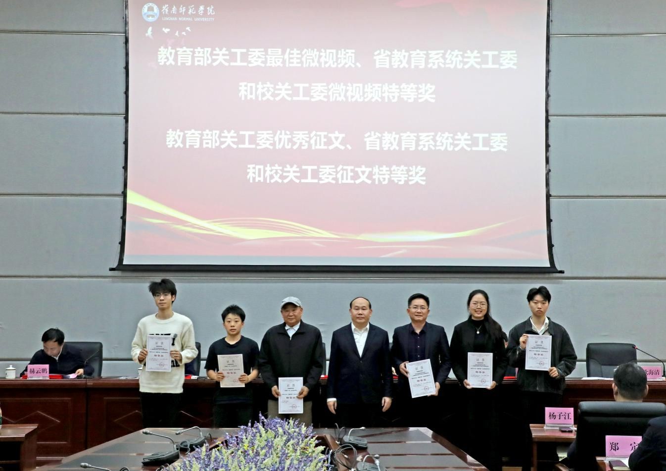 学校党委书记阳爱民为教育部关工委最佳微视频、优秀征文颁奖