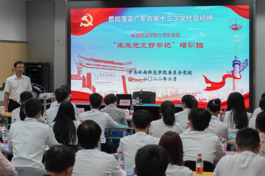 岭师新闻中心讯:6月15日晚,岭南师范学院大学生党员“未来党支部书记”培训班首期培训在未来教育空间站开讲。学校党委书记、党校校长兰艳泽作为培训班首讲,希望同学们牢记习近平总书记对青年大学生的重要嘱托和殷切厚望,在青春的赛道上奋勇争先,以梦为马,不负韶华,跑出最好成绩,以实际行动迎接党的二十大胜利召开!