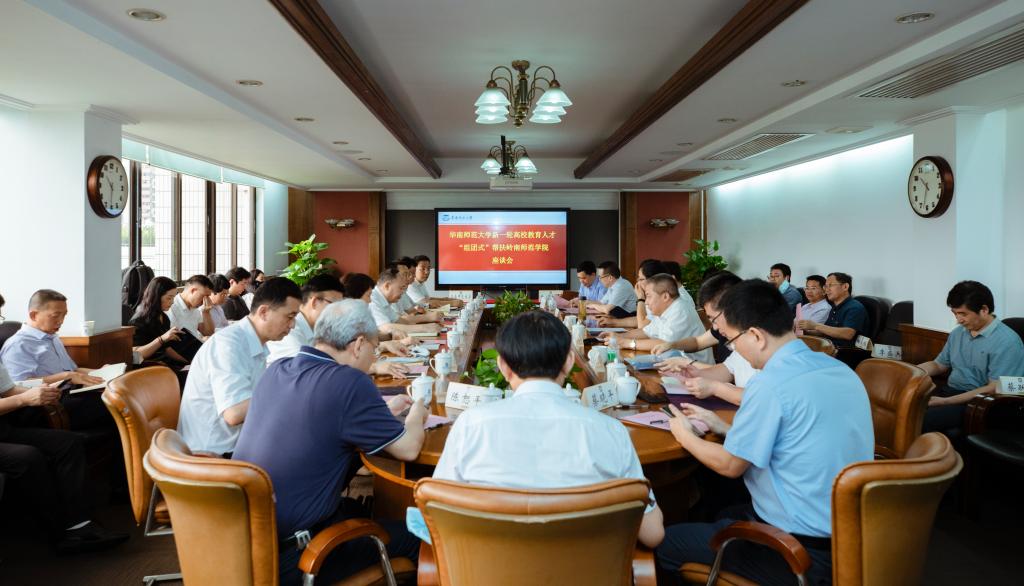 6月20日上午,校党委书记兰艳泽、校长阳爱民率队赴华南师范大学调研交流,就进一步落实好新一轮“组团式”帮扶工作展开座谈。学校党委书记兰艳泽、校长阳爱民、党委副书记黄达海、副校长金义富、王胜,华南师范大学校长王恩科,副校长吴坚、陈文海,帮扶队队长卢勃出席交流会。双方有关职能部门负责人和全体帮扶队队员参加了座谈。