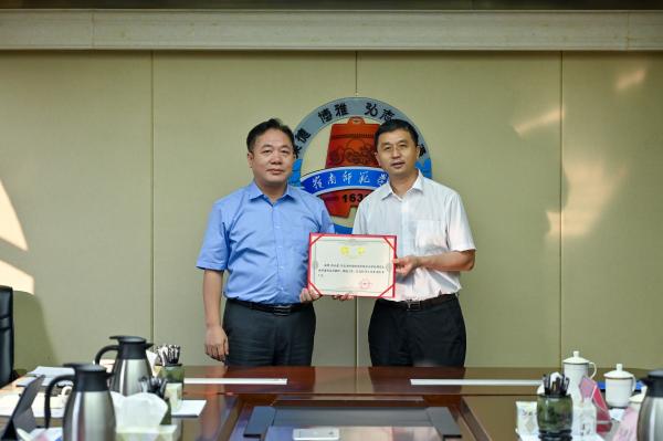 会上,双方签署了研究生联合培养基地协议。王胜为温盾、黄传清、张业建等3名校外兼职研究生导师颁发聘书。王胜简要介绍了研究生联合培养基地的理念、模式和做法,期盼以此次合作为契机,提升学校人才培养质量,为宝钢湛江钢铁有限公司输送更多优秀人才,为服务地方发展提供人才支撑和智力支持。
