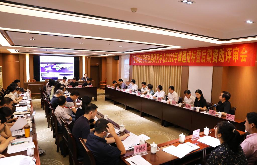 岭师新闻中心讯:7月4日,广东沿海经济带发展研究中心2022年课题招标暨后期资助评审会在园府酒店三楼会议室召开。岭南师范学院党委书记、中心主任兰艳泽教授,副校长苏古发,湛江市社科联二级巡视员邵锋,市政府研究室主持工作副主任林书敏,广东海洋大学管理学院副院长杜军教授,科研处处长刘群慧教授等出席大会,中心副主任王亚新、陈恕平、赫云鹏、刘惠卿、许抄军以及中心骨干成员40余人出席了大会。