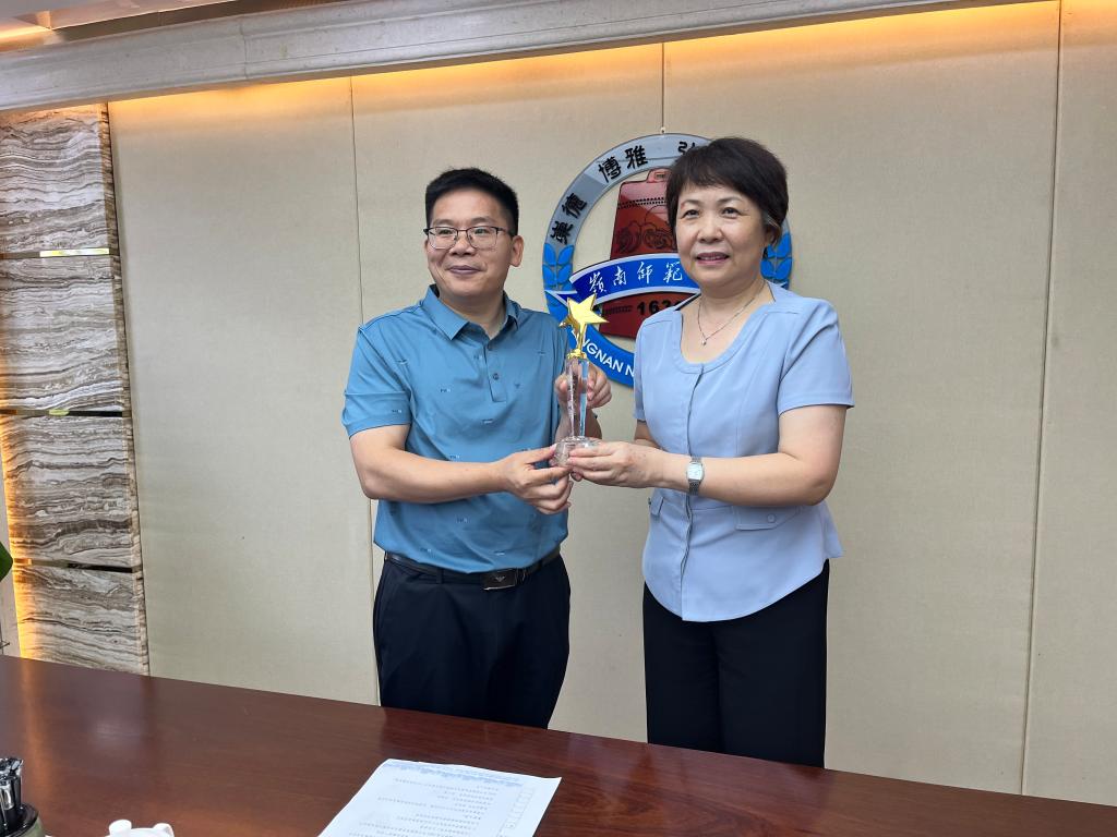 中国教育扶贫研究中心主任助理龚东卫为我校颁发“突出贡献奖”