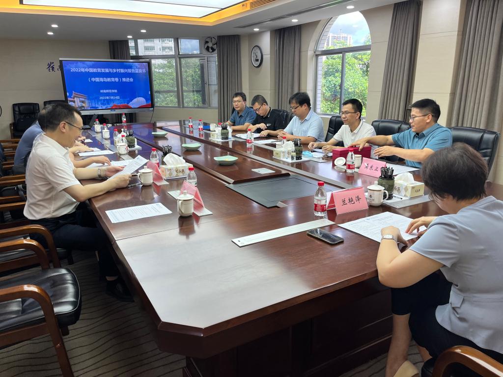 岭师新闻中心讯:7月14日, 2022年中国教育发展与乡村振兴报告蓝皮书(中国海岛教育卷)推进会在学校一号会议室召开。中国教育扶贫研究中心主任助理龚东卫,学校党委书记兰艳泽、副校长金义富出席会议。
