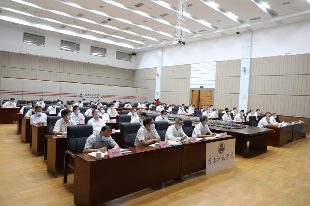岭师新闻中心讯:8月20日-21日,省委组织部、省委教育工委举办第26期全省高校领导干部暑期读书班。读书班通过网络视频的形式举办,主会场设在省教育厅,21个地级以上市设置了29个分会场。湛江分会场设在岭南师范学院,湛江市副市长吴国雄、市教育局局长陈升,广东海洋大学、广东医科大学、岭南师范学院、湛江幼儿师范专科学校、湛江科技学院、广东文理职业学院等六所在湛高校的领导班子成员、党委组织部部长、宣传部部长、统战部部长在国际会议厅参加专题学习。