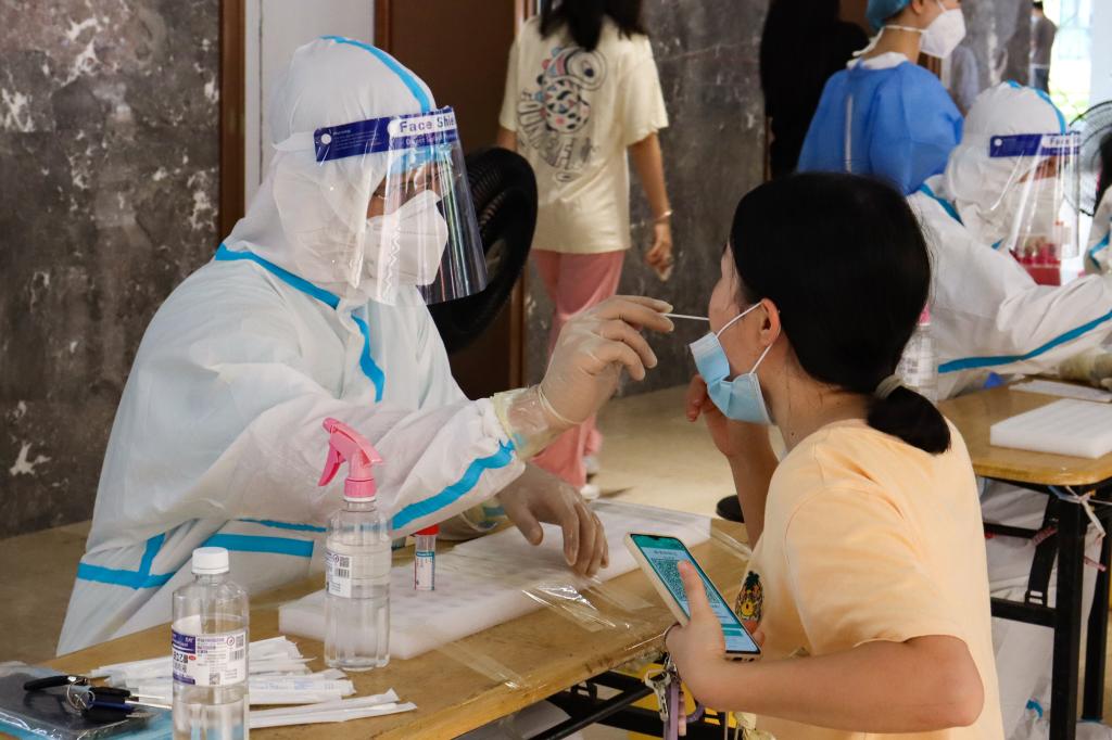 8月29日,师生在雷阳广场采样点进行核酸检测(赵宇清摄)