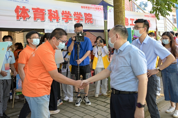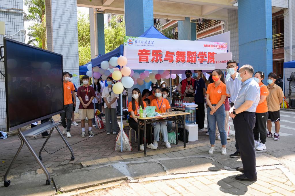 “来了多少新生了?”“新生大都来自哪里?”“你们的迎新方式很有特色啊!”“一定要做好服务工作,确保新生报到安全、便捷、高效。”阳爱民、黄达海一行陆续来到明德苑、南门、尚志苑等迎新接待点,边走边问,详细了解各二级学院迎新工作进展情况,并提出指导意见。阳爱民认为此次迎新工作安全有序、热情周到,希望各二级学院再接再厉,确保迎新工作安全、顺利进行,既要守好疫情防控关,也要让新生感受到岭师的温暖与热情。