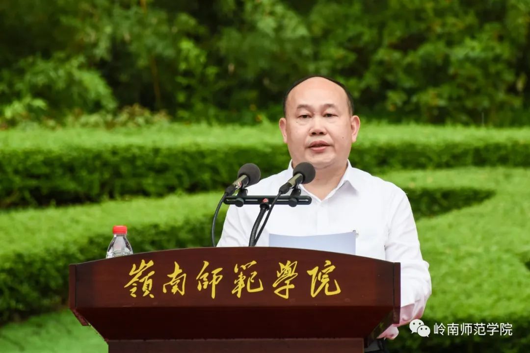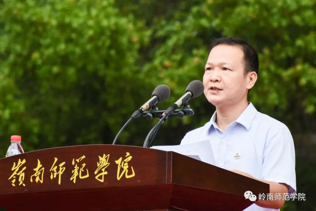“进入人生新征程,开启脚下岭师路,成为岭师新一级的主人,愿你们爱她、护她、以她为荣。”阳爱民指出,岭南师范学院历经百余年岁月变迁,人文底蕴深厚、坚守师范本色,致力整合优质办学资源,不断提高办学水平和教育质量,更好服务于师生。一批批岭师学子从这里出发,扎根粤西、深入全国、走向世界,成为各行各业的中坚力量。他希望新生们谨记“崇德、博雅、弘志、信勇”的校训精神,与岭师一道奋勇向前。
