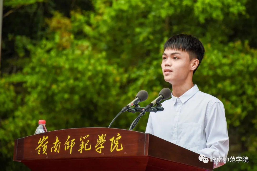 教育科学学院2022级小学教育专业的古槟源作为新生代表发言,分享了他选择岭师、报考定向公费师范生的初心,表示要做一名踔厉奋发、笃行不怠的岭师人,向阳而生,自强不息,无畏艰难,与时代同行,共写青春华章。