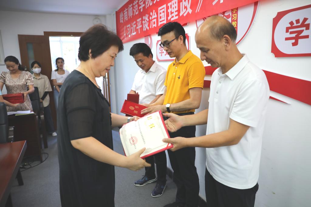 学校党委书记兰艳泽向宣讲团成员颁发聘书(赵宇清摄)