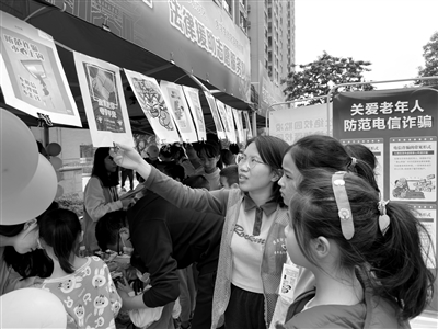 4月9日,大学生志愿者为群众提供反诈宣传服务。本报记者 林石湛 摄