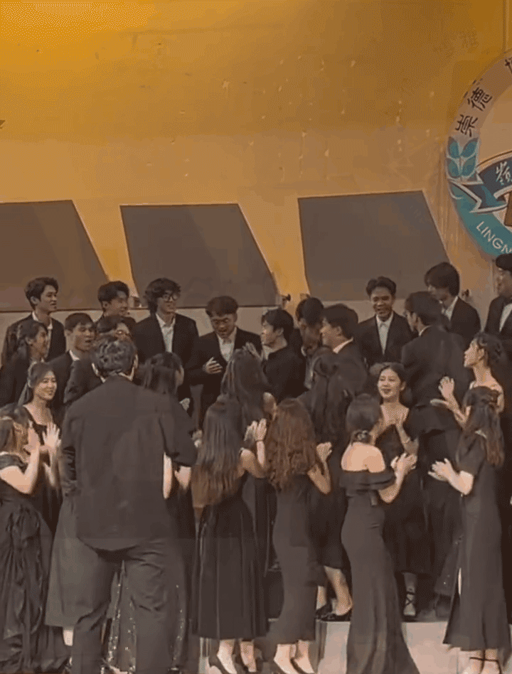 “听到曲子变了后完全是一个很懵的状态,没想到他们会偷偷私下排练,把节目改成一个惊喜的告别仪式,当时舞台上的师弟师妹们和舞台下的所有观众都在为我们呐喊祝福,让我一下子就绷不住泪流满面了……”