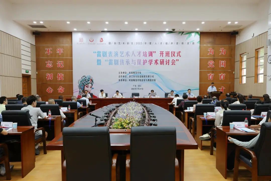 这是一场校地合作的“双向奔赴”7月27日国家艺术基金2023年度人才培养资助项目“雷剧表演艺术人才培训”开班仪式暨“雷剧传承与保护专题学术研讨会”在岭南师范学院举行在这里,30名学员开启培训生涯专家学者齐聚一堂探讨雷剧的传承发展路径