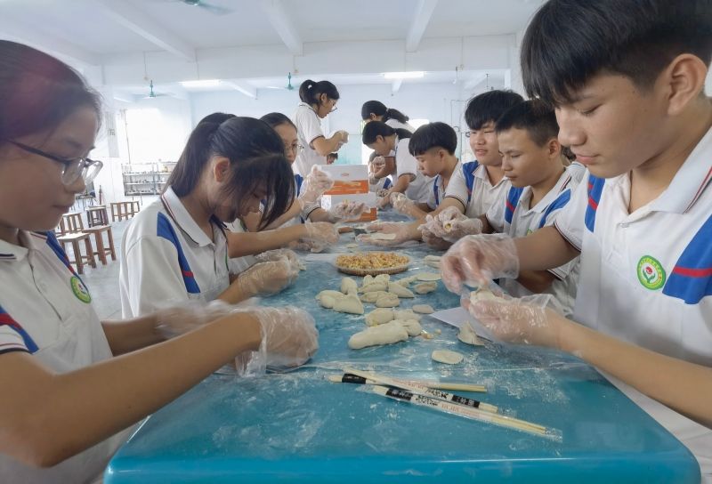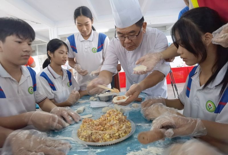 在杨柑二中学生食堂,简短的启动仪式后,各项主题活动相继开展。为帮助学生树立健康的饮食观,营养专家现场开展“送教下乡食育大讲堂”,结合大量图片、数据等讲授青少年饮食特点及健康膳食指南。在随后的“教育三下乡”食育课堂中,烹饪大师则通过美食烹饪,鼓励学生自己动手参与制作包饺子、蒸饺子、蒸鸡等特色菜品,开展食育教育,并向部分食育课堂负责人分享了课程设计理念和食育经验。