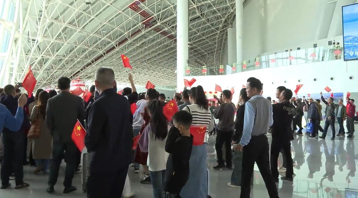 10时30分,来来往往的旅客穿梭在宽敞明亮的徐闻港候客大厅。“我爱你中国,我爱你中国,我爱你春天蓬勃的秧苗,我爱你秋日金黄的硕果”,一阵稚嫩的歌声回荡在徐闻港得月门前。一名手摇国旗,脸上贴着五星红旗贴纸的小男孩在湛江徐闻港得月门前唱起歌曲《我爱你中国》。清脆的长笛、低沉的大提琴、深厚的黑管、悠扬的小提琴等乐器相继弹奏起大家耳熟能详的《我爱你中国》旋律。随后在岭南师范学院新空合唱团动听的合唱中拉开活动的序幕,部分旅客伴随着歌声翩翩起舞。舞蹈伴着歌声飞扬,带动着众多现场的候船旅客一起加入到合唱的队伍中,一同欢声高唱“我要把最美的青春献给你,我的母亲,我的祖国”。游客们在湛江徐闻港得月门前一同忘情欢唱,带着对祖国母亲的热爱,也带着对2024年新的美好愿望,奔赴下一趟旅程。