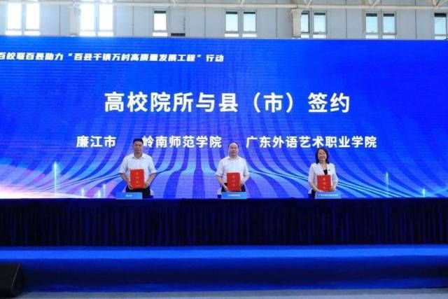 廉江市是岭南师范学院深入贯彻落实百校联百县助力“百县千镇万村高质量发展工程”行动(以下简称“双百行动”)对接共建的县市。2023年9月,岭南师范学院成立了由学校党委书记、校长任组长的助力“双百行动”工作领导小组,制定帮扶机制、细化帮扶清单,统筹推进学校组织化、系统化、项目化助推“百千万工程”,聚焦“筑峰工程”“四美”建设、产研融合、技术指导和理论提升,对口帮扶廉江市推动县域经济高质量发展,提供了“岭师方案”。