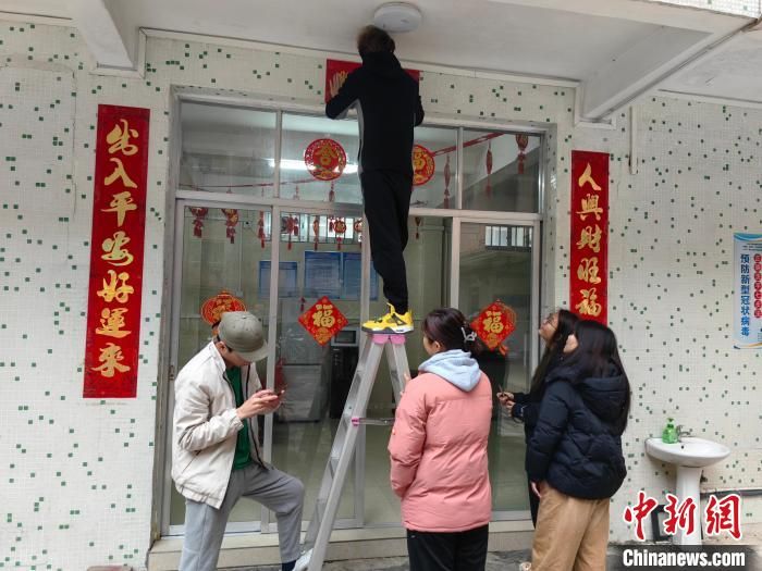 “这个‘福’字还要再贴高一点,再往左一点。”来自印度尼西亚的留学生周丽红对正在餐厅大门上贴“福”字的蒙古留学生李察说。
