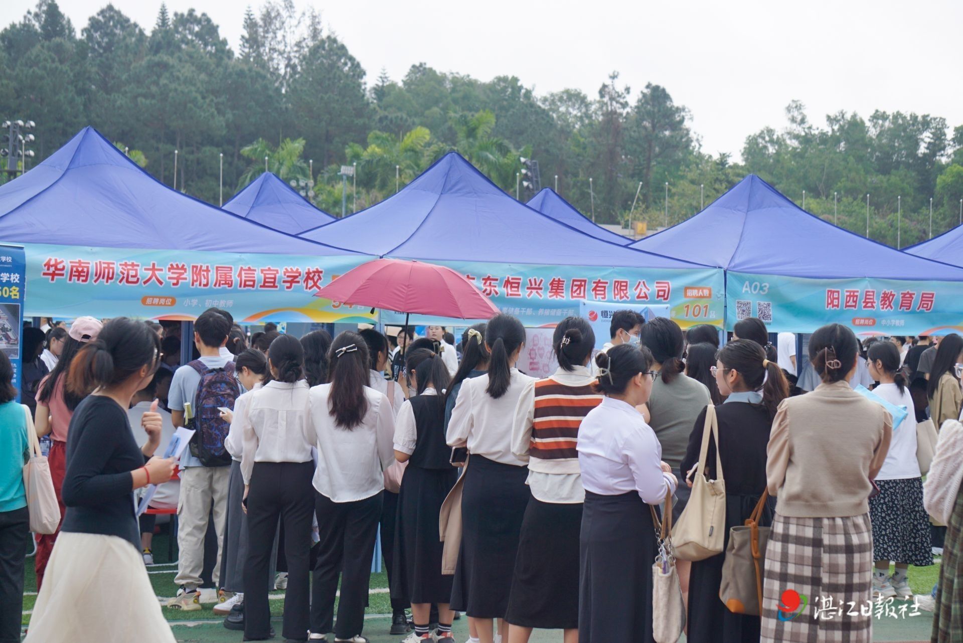 活动现场人头攒动,300家用人单位参与了现场招聘,覆盖5省48市(县、区),其中包括教育类行业100家(教育局2家、优质民办学校68家、教培30家)、各类企业200家。现场还设立了宣讲大舞台,广东恒兴集团有限公司、中国工商银行湛江分行等一大批优质企业单位,以及佛山市顺德区光正实验学校等省内优质民办学校进行了宣讲推介。