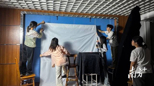 这是这群学生第一次接触棚拍,从布景、调光到试镜,每一步都要自学。直到开拍的前一晚,才拍出了第一张光感恰到好处的形象照。