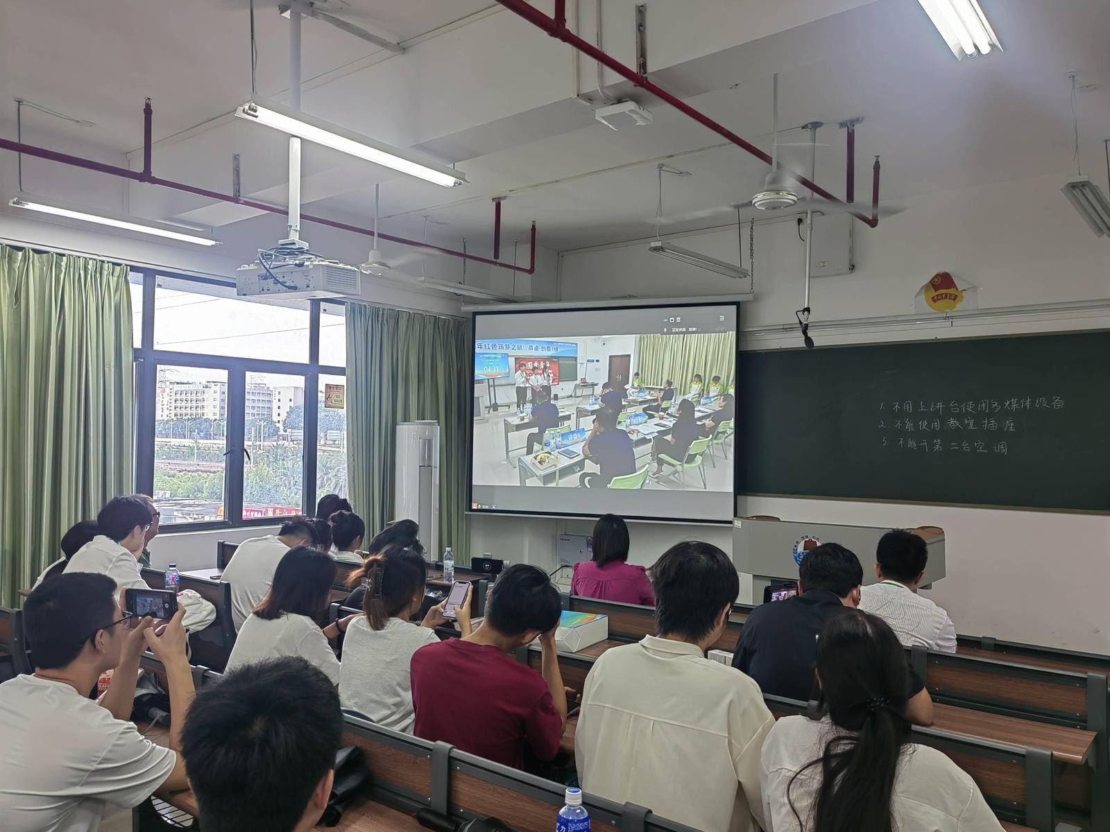 比赛分当天上午、下午两个时间段进行。四个赛道370个项目共分为18组进行封闭式比赛。18个赛场各自对应的观摩室座无虚席,观摩师生全神贯注观看着正在进行的比赛。屏幕上,选手全力介绍展示参赛项目,评委现场提问、现场打分,得分结果当场在屏幕上显示。赛场外,刚比赛完的师生在激烈讨论着比赛情况,对比赛进行复盘,打卡拍照,纪念参赛经历。
