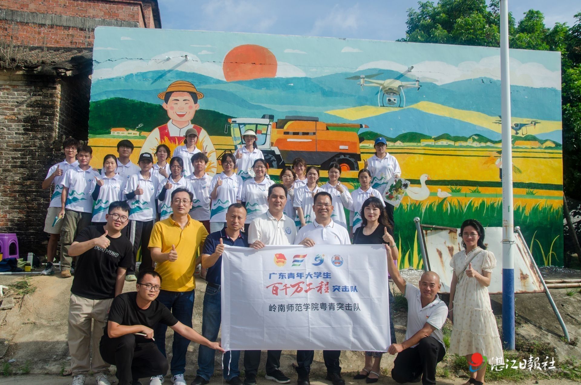 近日,记者从驻湛高校了解到:今年暑假,岭南师范学院美术与设计学院参加暑期“三下乡”暨“百千万工程”突击队行动实践的236名大学生陆续奔赴湛江、茂名等地,累计为县镇村绘制墙绘近2000平方米、开展美育课100多节、举办非遗文化传承等活动30余场。青年学子们在烈日下、风雨中,留下了助力乡村振兴的美丽身影。