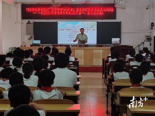 在科普讲座环节,学校人工智能讲师团成员曾绍庚为下洋镇中心小学学生带来一场生动而前沿的AI知识课。他系统讲解了人工智能的发展历程、国产AI技术的优势与功能,并结合实际案例,阐释了AI在教学与日常生活中的应用场景。此外,他还引导学生正确认识和使用人工智能,初步揭示AI背后的算法原理,激发了学生们对信息科技的浓厚兴趣。