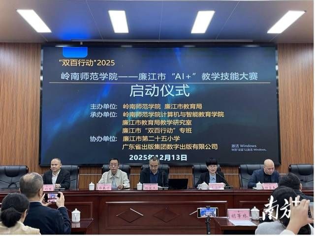 岭南师范学院计算机与智能教育学院院长杨俊杰表示,当前教育正经历数字化、智能化深刻变革,教师是推动教育创新的关键力量。他介绍了学校近年来在人工智能教育领域的探索与实践,包括成立“湛江市中小学人工智能素养教育共同体”、组建由校长领衔的人工智能讲师团等,已累计服务教师超2000人次。杨俊杰表示,学院将持续整合资源,为廉江教师提供从理论到实践的全方位支持,共同打造“AI+教育”区域示范。