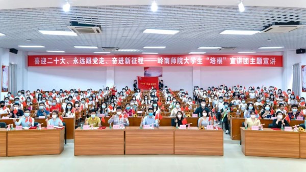 岭南师范学院团委书记林仲彦介绍,学校大学生“培根”宣讲团成立于2021年4月,一年来,100名大学生宣讲员深入师生、走出校门,围绕党史学习教育目标要求,通过“线上+线下”累计开展党史、校史、地方史等红色主题宣讲高达202场,覆盖人数超20000人次。宣讲团积极对接团省委“青年云支教”项目,深入乡村中小学校开展“党史教育进百校”,帮助广东乡村青少年健康成长,相关实践项目被团省委评为“优秀项目策划奖”,获“一类资助项目”。