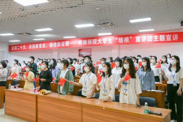 “百名党史宣讲员将围绕‘喜迎二十大、永远跟党走、奋进新征程’主题,赓续传承正确、正面、正风宣讲的优良传统,推动党史宣讲深入师生、深入社区、深入人心,不断深化拓展党史学习教育成果。”林仲彦说,要通过新一轮宣讲活动打造岭南师范学院“行走的思政课堂”,推动大学生思想引领行动生根发芽,进一步激励青年学子为实现“两个一百年”奋斗目标、实现中华民族伟大复兴的中国梦贡献青春智慧和力量。