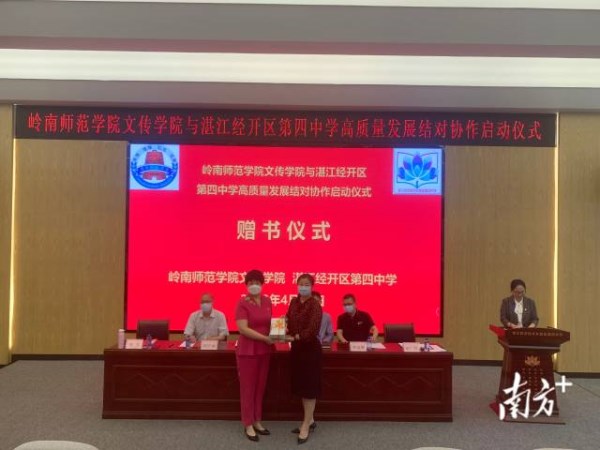 启动仪式上,岭南师范学院文学与传媒学院院长阎开振和经开区四中校长李节代表双方签署帮扶协议。双方将在未来五年建立教育协作、共建共享的帮扶机制,充分发挥高校在科研、人才、资源等方面的优势,为中学在品质学校建设、品质课程建设、协同教研建设、师资素质等全方位提升,以及学生课后服务等方面提供智力支持和资源条件。