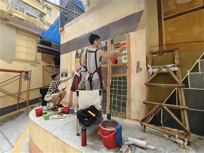 原标题链接:80米彩色墙绘讲述赤坎老街故事