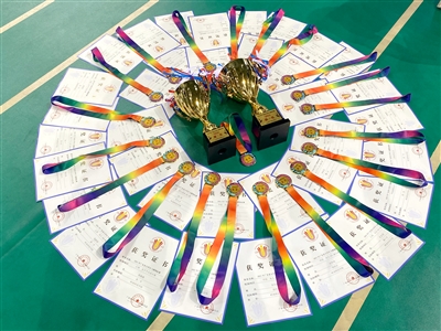 功夫不负有心人,目前这支仅成立3年多的队伍,在中国大学生飞镖联赛、广东省大学生飞镖锦标赛等各大比赛中累计已获得18项冠军、16项亚军、2项季军,以及团体总分第一、第二的好成绩。2021年11月初,岭师飞镖队在中国大学生飞镖联赛(新乡站)获得了2金2银2铜和团体总分第二名的好成绩;半个月后,这支队伍又在广东省大学生飞镖锦标赛中创下了夺得11项冠军、9项亚军、1项季军以及乙组团体总分第一名、甲组团体总分第二名的好战绩。