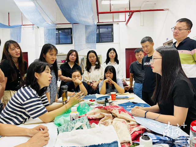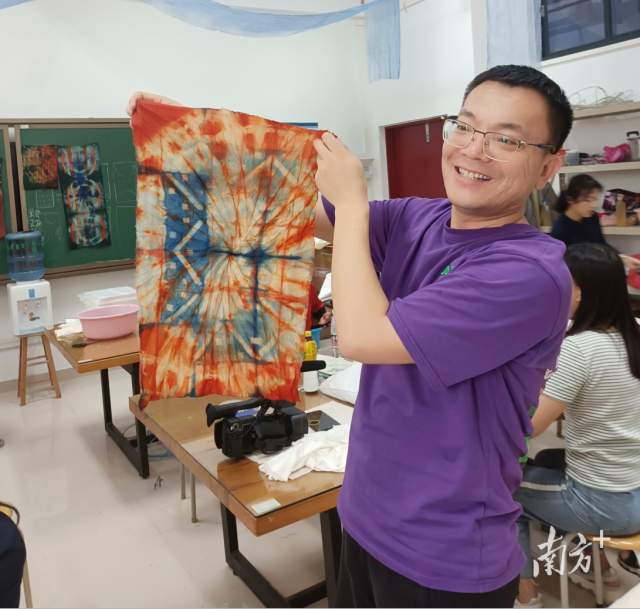 “最近几天,我们跟着老师学习扎染的基本技法,这是中国民间传统而独特的染色工艺,真是‘布’里生花、奇妙无穷啊!”7月5日,在岭南师范学院美术与设计学院的扎染工作室,学员张立勇高兴地展示了刚完成的作品。