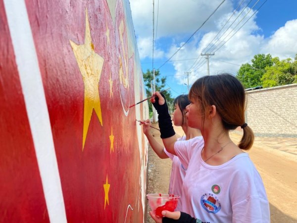 志愿者们共绘红色画作