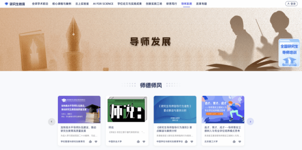 通过师德师风、培养指导、导学关系、数字素养等课程,帮助研究生导师提升师德师风素养、专业指导能力,掌握和谐导学关系构建方法;助力高校打造高水平研究生指导队伍,为研究生培养筑牢师资基础。