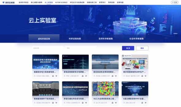 构建云端科研环境,推动科研资源开放共享,既为师生的科研分析提供多学科权威数据集支撑,又助力突破物理场地与仪器设备限制,实现从研究假设到实验验证的全流程云端操作与仿真演练。目前已集聚60万余个多学科数据集、近300个大型科研基础设施与仪器公共平台、140余个虚拟仿真实验等资源。