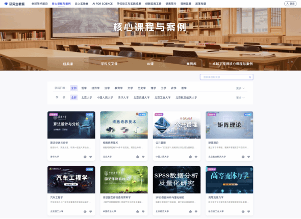 构建涵盖多学科的课程与案例资源体系,助力研究生系统搭建研学知识体系、补足研学所需的经典理论以及跨学科交叉知识,通过真实教学案例实现理论知识与实践场景的深度衔接。目前已汇聚2500余门优质在线课程、2.4万余个教学案例等资源。